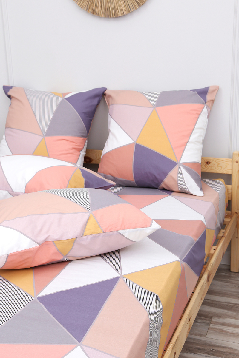 В данной расцветки Вы можете приобрести простыни и пододеяльники. Также представлен весь ассортимент в ткани Геометрия-компаньон. Создайте идеальный комплект постельного белья для Вашего сна!