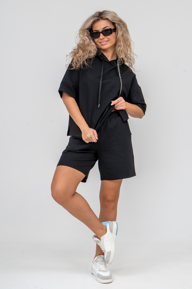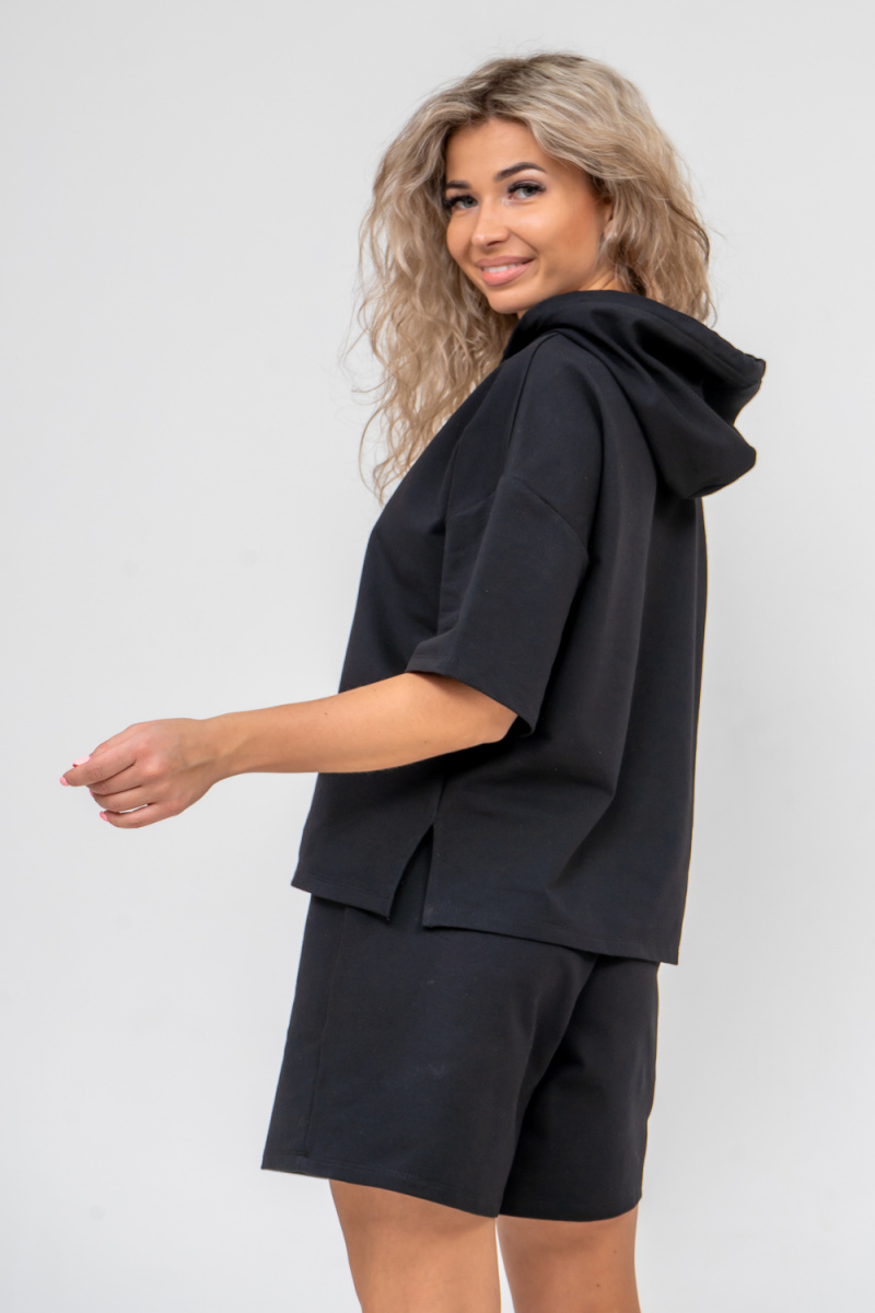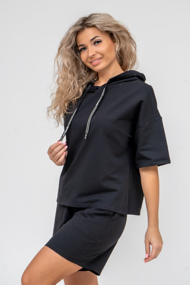 Женский костюм 2-ка выполнен из футера высокого качества с хлопком и небольшим добавлением полиэстера и лайкры, что позволяет изделию не скатываться и оставлять идеальный внешний вид на долгое время. Костюм состоит из толстовки и шорт. Толстовка с капюшоном и шнурком. Линия плеча спущена, рукав укороченный, по бокам имеются небольшие разрезы. Свободный крой прекрасно будет смотреться на дамах с любыми формами. Костюм такого плана представлен в широкой размерной сетке, что позволяет выбрать его как девушке, так и женщине. Однотонный костюм модных расцветок будет удачным выбором для поездок в отпуск, на пикник, для активного отдыха и прогулок по городу. Будет гармонично сочетаться как с кроссовками, так и с туфлями, балетками или босоножками. Используя эту модель в качестве домашнего костюма, Вы поймёте, что это именно тот самый идеальный вариант, в котором вы будете себя чувствовать удобно, комфортно и современно. Костюм с шортами - это настоящая находка для тех, кто ценит свою индивидуальность!