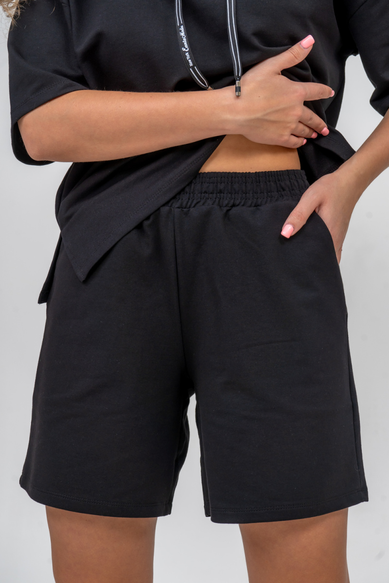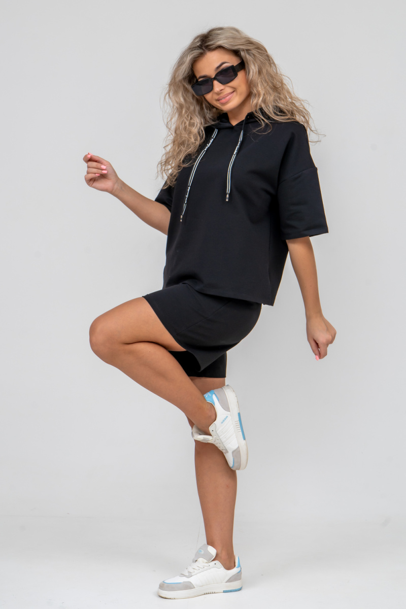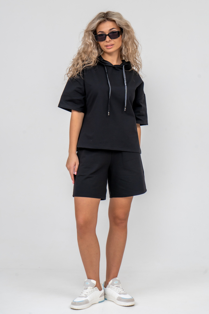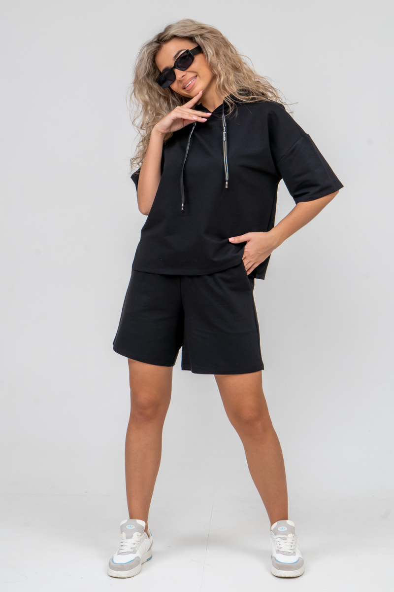 Женский костюм 2-ка выполнен из футера высокого качества с хлопком и небольшим добавлением полиэстера и лайкры, что позволяет изделию не скатываться и оставлять идеальный внешний вид на долгое время. Костюм состоит из толстовки и шорт. Толстовка с капюшоном и шнурком. Линия плеча спущена, рукав укороченный, по бокам имеются небольшие разрезы. Свободный крой прекрасно будет смотреться на дамах с любыми формами. Костюм такого плана представлен в широкой размерной сетке, что позволяет выбрать его как девушке, так и женщине. Однотонный костюм модных расцветок будет удачным выбором для поездок в отпуск, на пикник, для активного отдыха и прогулок по городу. Будет гармонично сочетаться как с кроссовками, так и с туфлями, балетками или босоножками. Используя эту модель в качестве домашнего костюма, Вы поймёте, что это именно тот самый идеальный вариант, в котором вы будете себя чувствовать удобно, комфортно и современно. Костюм с шортами - это настоящая находка для тех, кто ценит свою индивидуальность!