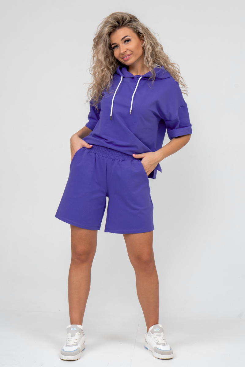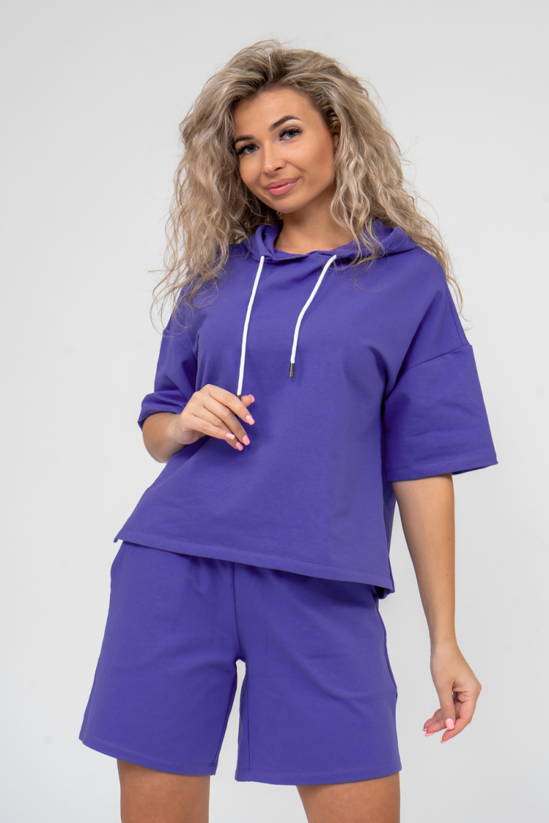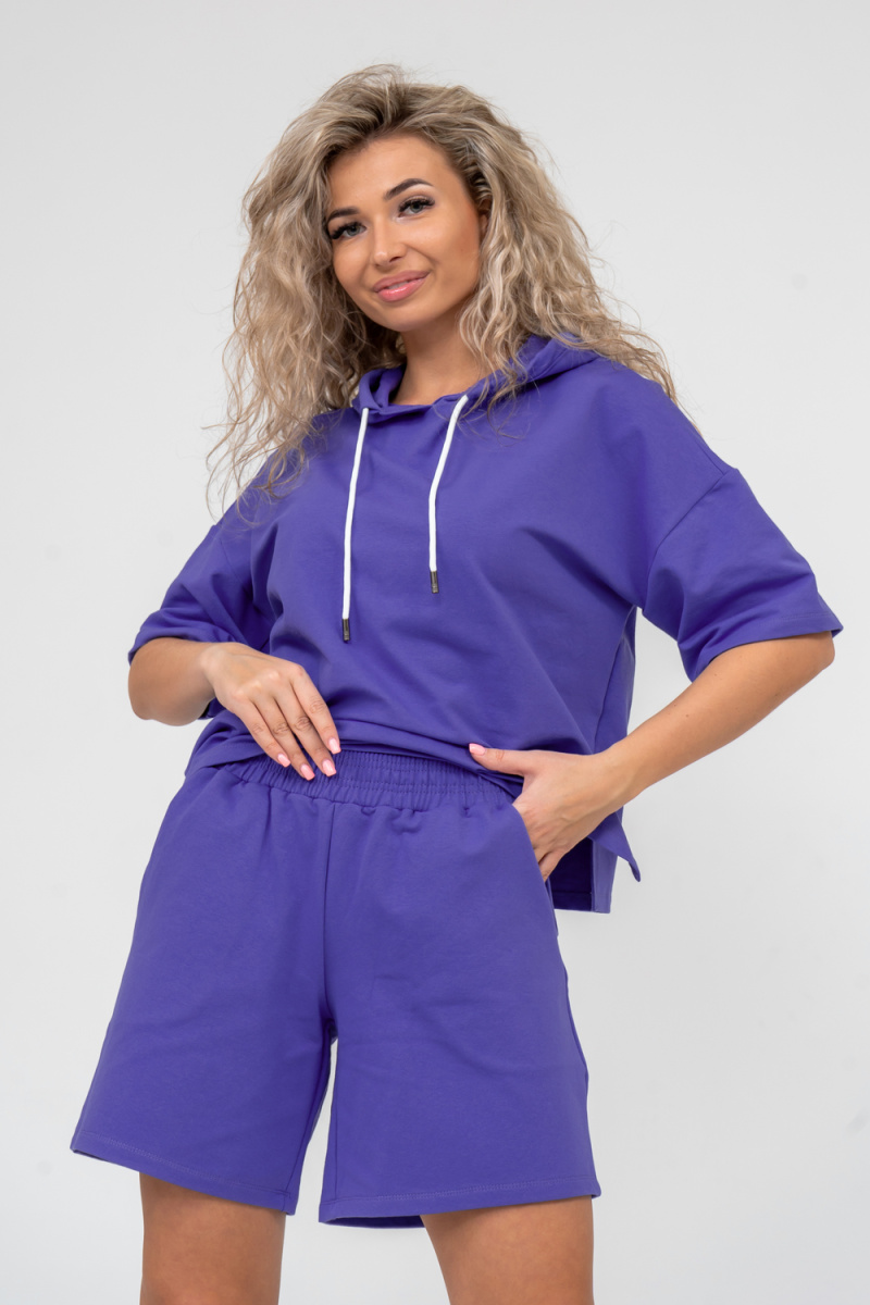 Женский костюм 2-ка выполнен из футера высокого качества с хлопком и небольшим добавлением полиэстера и лайкры, что позволяет изделию не скатываться и оставлять идеальный внешний вид на долгое время. Костюм состоит из толстовки и шорт. Толстовка с капюшоном и шнурком. Линия плеча спущена, рукав укороченный, по бокам имеются небольшие разрезы. Свободный крой прекрасно будет смотреться на дамах с любыми формами. Костюм такого плана представлен в широкой размерной сетке, что позволяет выбрать его как девушке, так и женщине. Однотонный костюм модных расцветок будет удачным выбором для поездок в отпуск, на пикник, для активного отдыха и прогулок по городу. Будет гармонично сочетаться как с кроссовками, так и с туфлями, балетками или босоножками. Используя эту модель в качестве домашнего костюма, Вы поймёте, что это именно тот самый идеальный вариант, в котором вы будете себя чувствовать удобно, комфортно и современно. Костюм с шортами - это настоящая находка для тех, кто ценит свою индивидуальность!