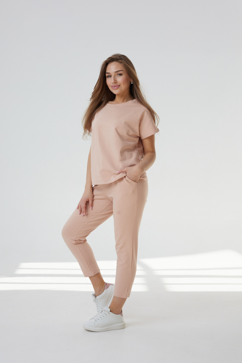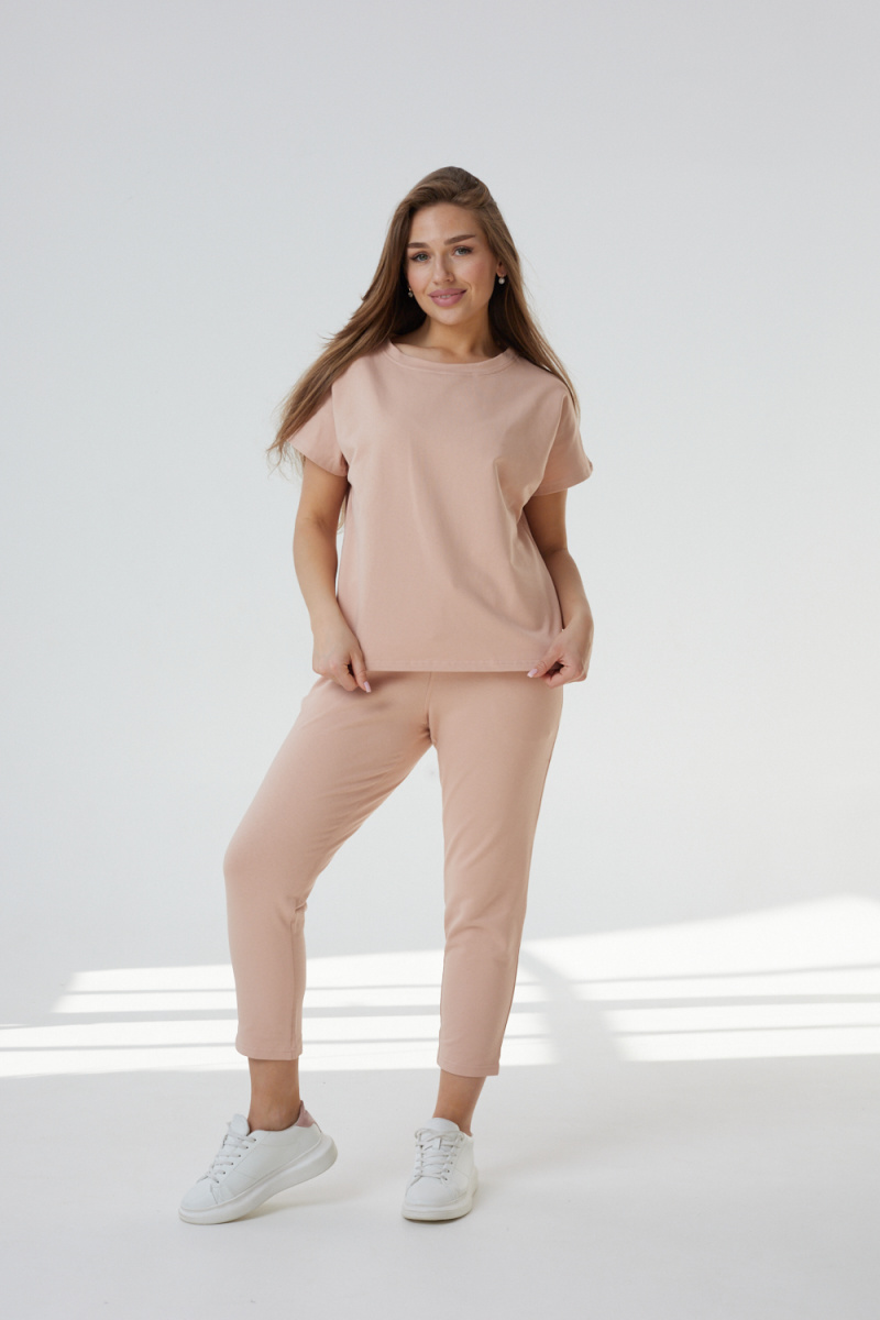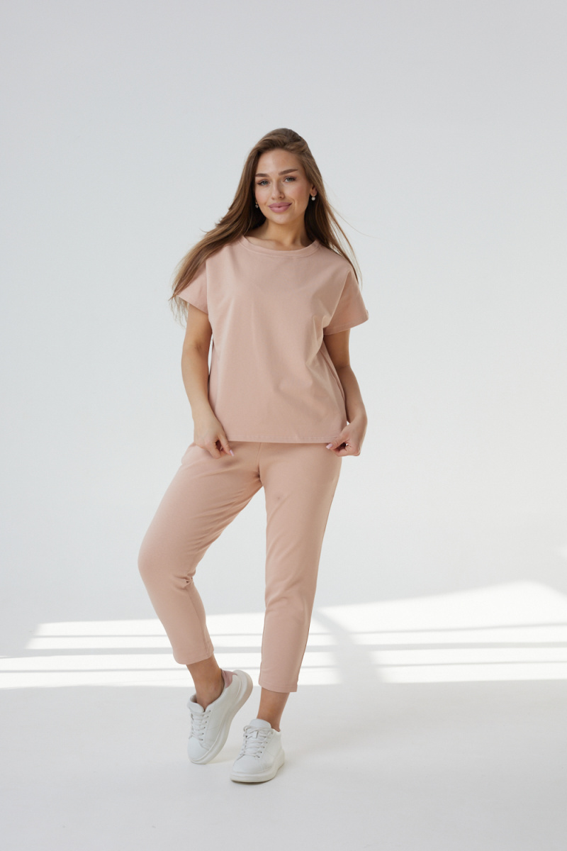 Представляем Вашему вниманию стильный и удобный костюм, изготовленный из качественного материала. Костюм состоит из укороченных брюк и футболки. Наряд обладает исключительной нежностью и мягкостью, которые не проходят через долгое время и позволят Вам наслаждаться комфортом. Очаровательная расцветка этого костюма подарит Вам хорошее настроение и положительные эмоции.