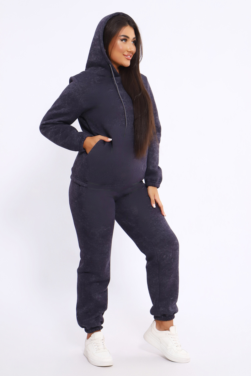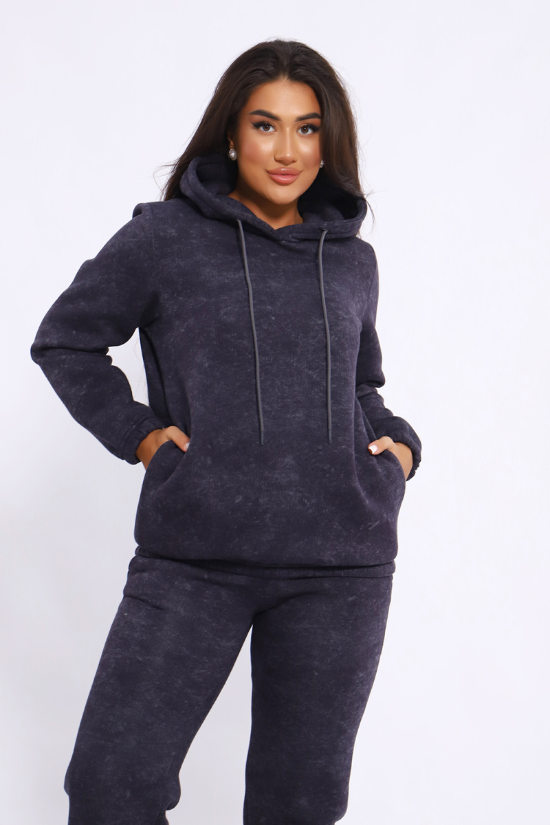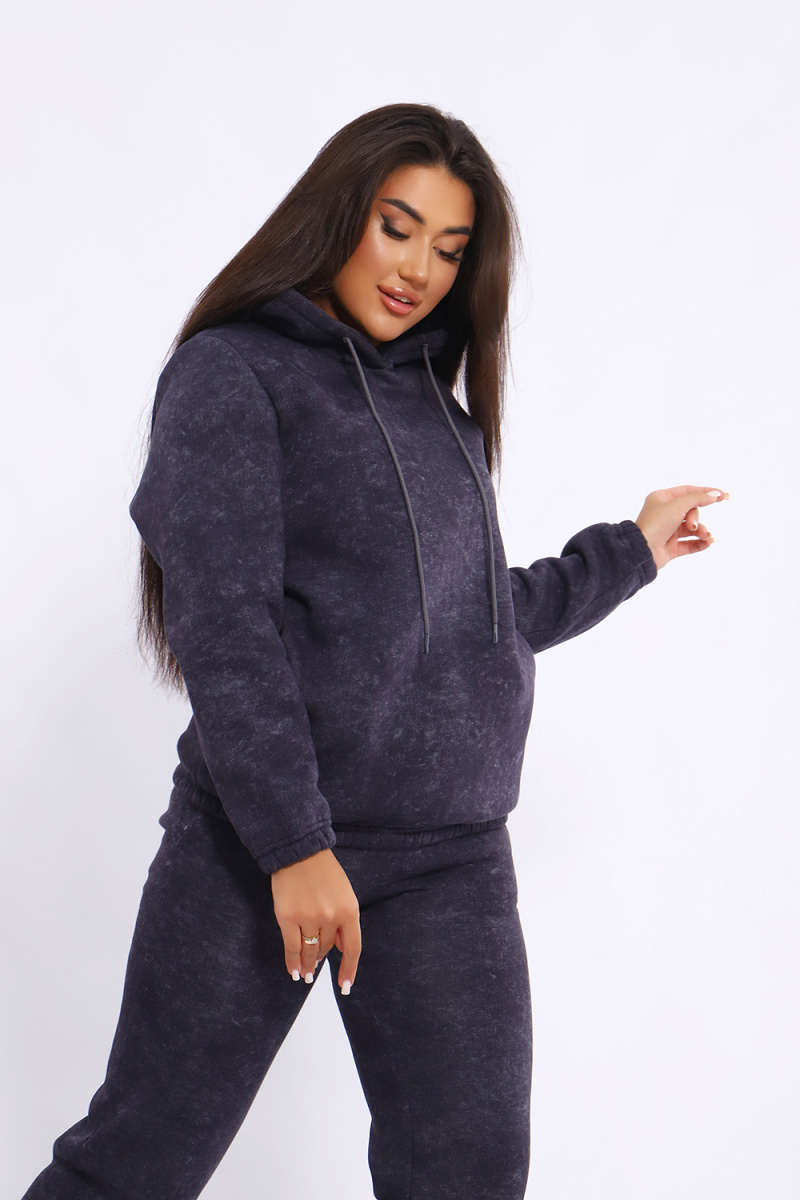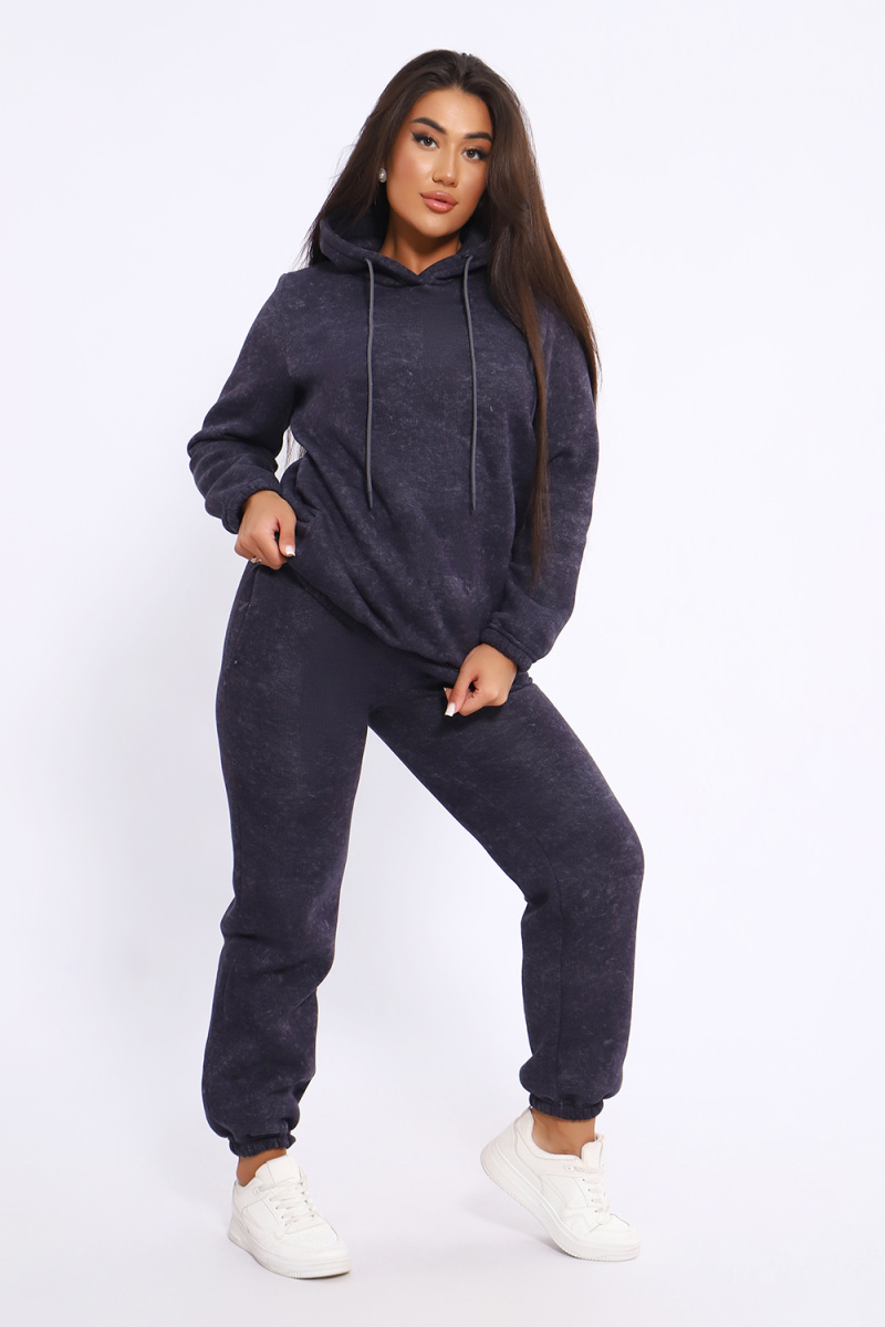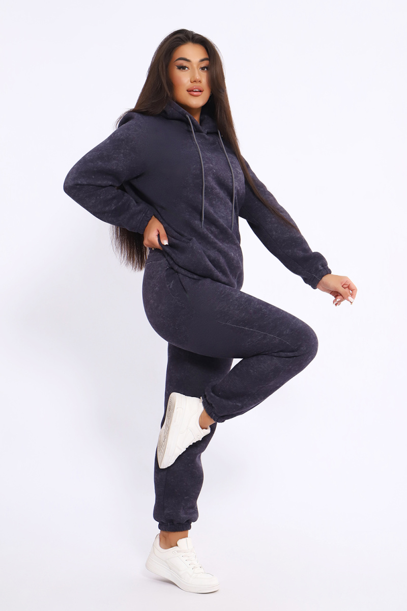Костюм женский состоит из худи слегка свободного, но классического кроя с карманами по бокам в швах и брюк с карманами элегантно интегрированными в данный фасон. Женский спортивный костюм с начесом дышащий, мягкий, комфортный благодаря своему натуральному составу ткани, прекрасно подходит для прохладной и холодной погоды. Двойной, но легкий капюшон добавляет эстетики. Широкий пояс брюк создаёт комфортную фиксацию. Изделие не увеличивает вас на два размера, но остаётся тёплым. Полотно в своей основе состоит из хлопка, добавление полиэстера делает его стабильным в использование и прочным к многократным стиркам (при соблюдении всех требований). Первая стирка на изнанку.