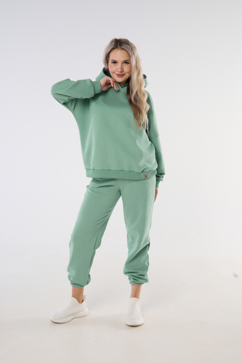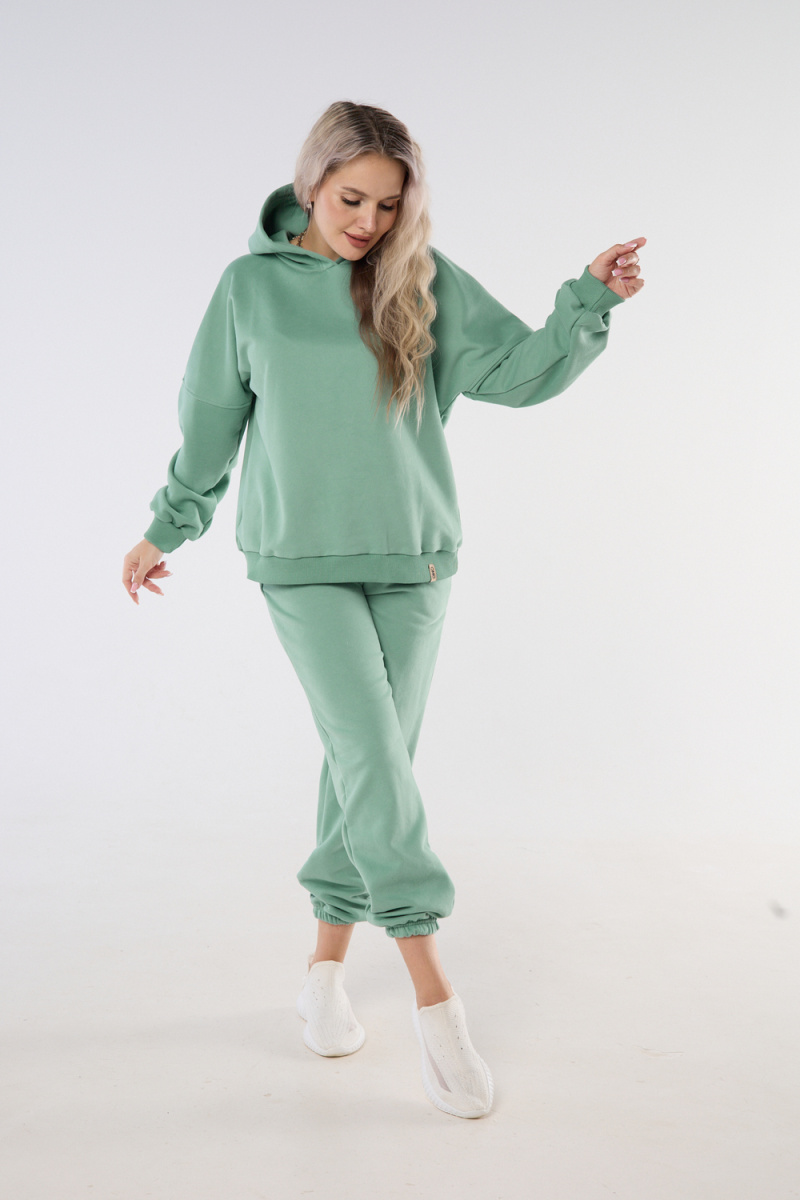 Особенностью данного костюма является наличие несъемного капюшона, который добавляет дополнительный уровень защиты от холода и ветра. Брюки в стиле джоггеры и толстовка без карманов создают стильный и современный образ, а однотонный рисунок позволяет легко сочетать костюм с другими элементами гардероба. Флисовое утепление и футерная фактура материала обеспечивают тепло и комфорт, даже в холодную погоду.